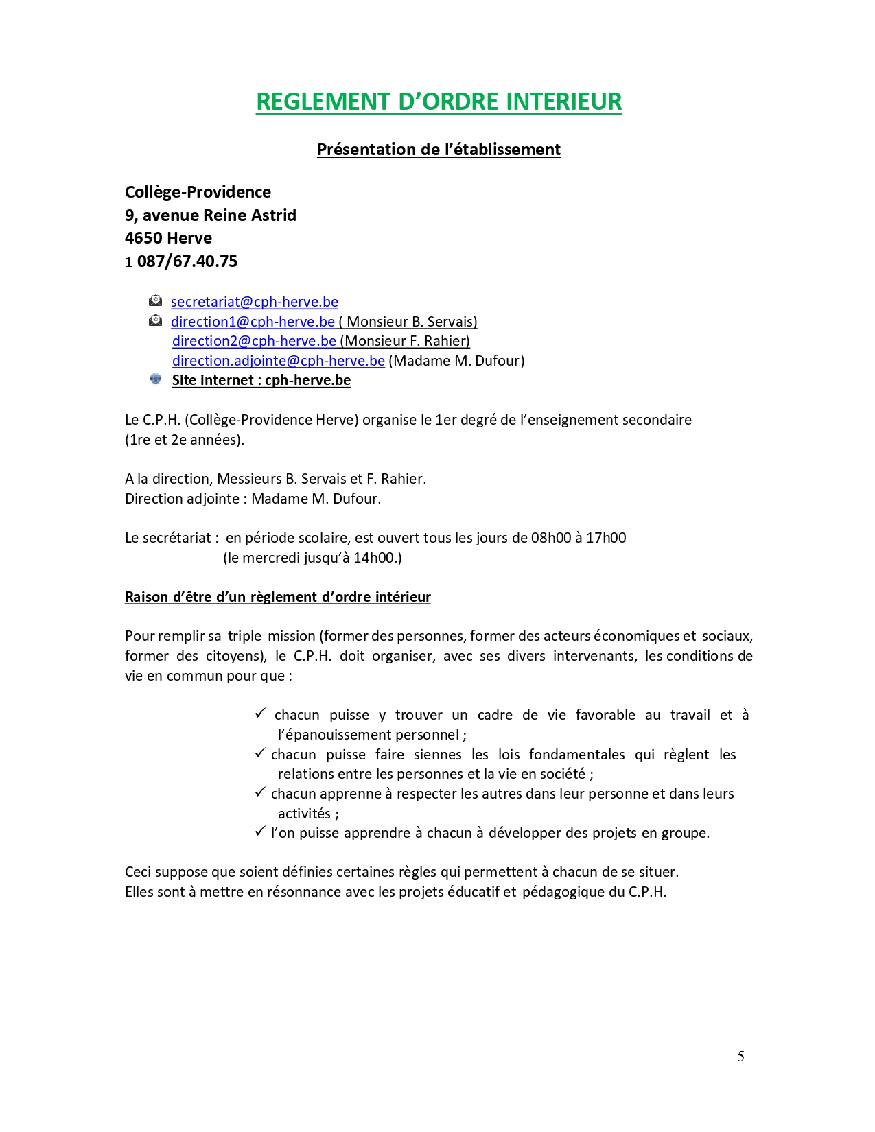 Règlement d'ordre intérieur