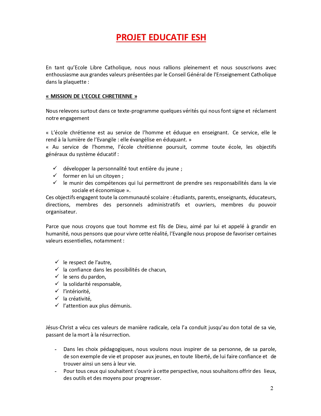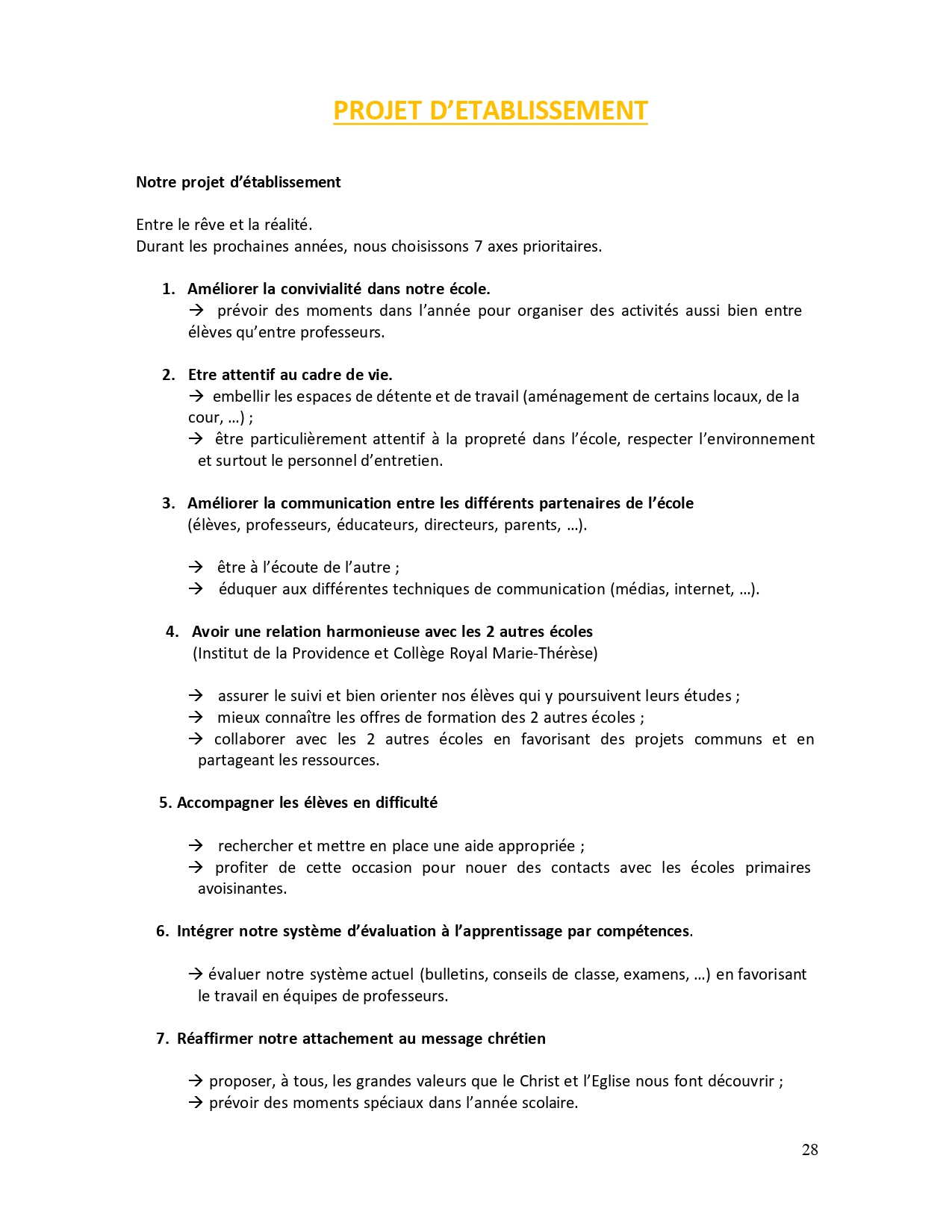 Projet d'établissement